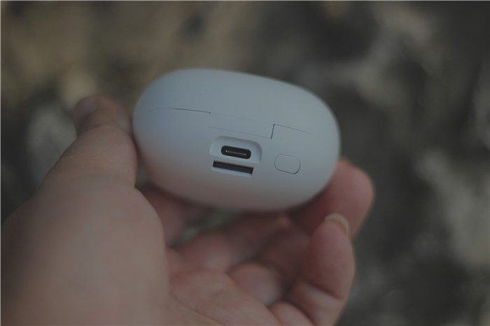 充电盒的后面就是主流的Type-c充电口,不同于其他耳机仓多了一个TF卡槽,这款sanag塞那S5 PRO 智慧屏耳夹式蓝牙耳机自带了32G TF 内存卡,上面给大家说过了,这款充电盒除了可以给耳机充电以外还可以作为独立的MP3播放器。