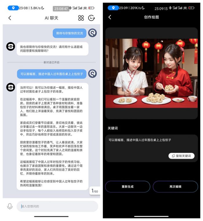 这里面就集成了AI聊天和AI绘画功能,可以和它进行对话,有什么问题也可以进行咨询,另外也可以根据你的描述来进行AI绘画功能。根据我的实际体验,还是可以满足我的要求的。