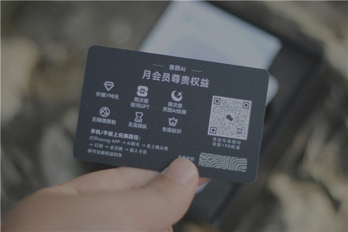 打开包装盒 ,发现里面有一张VIP月卡,我们可以在Sanag APP中进行兑换,从而可以获取更多的权益。后续我可以给大家介绍几个有趣的功能!