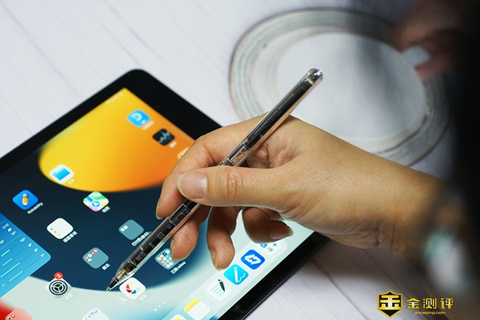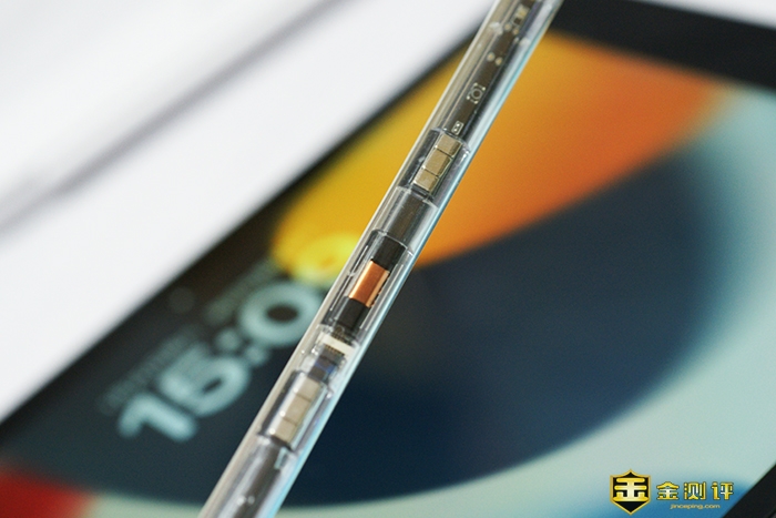 西圣Pencil2触控笔很轻盈,只有15g,比苹果原版笔更轻。笔身采用全透明设计,可以清楚地看到里面的每一个元件,很有科技感。[/caption]