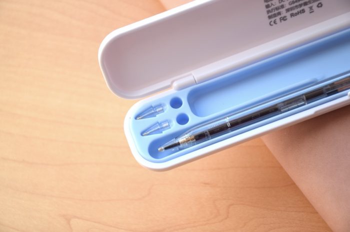 笔盒里还赠送了2个可替换笔头,一开始我还感觉这2个小笔头平平无奇,没想到做工也很考究,笔尖为复刻3D微磨砂质感,下笔的时候不容易打滑。同时笔尖内还配备了倾斜角度感应器,可以自动根据用户的倾斜角度,调整线条的粗细,这个设计挺方便的,比如说画画需要在细笔和粗笔之间来回切换的时候,不用在iPad上换笔头,只需轻轻倾斜笔尖角度即可。