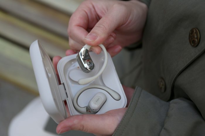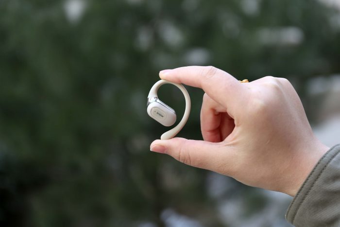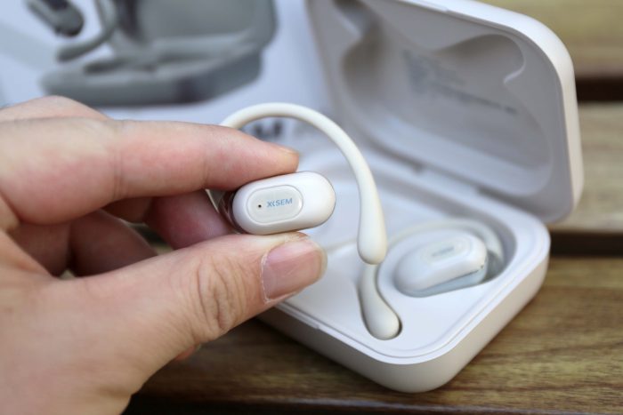 西圣Air采用了挂耳式的设计,所以从外观上看会显得比较大,但是它的单耳重量却只有6.5g,不亏是以Air来命名的产品。其材质上西圣Air采用高集成精密结构以及悬浮式耳挂搭配亲肤柔软硅胶, 配合前后1:1轻量化设计,重心更平稳,佩戴体验更轻更舒适,剧烈运动也不掉。