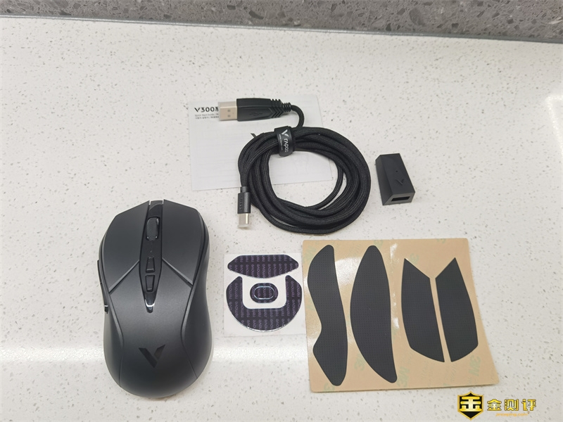 包装内还有鼠标连接线、说明书、防滑贴,甚至还有备用更换脚贴、USB转接器、USB接收器等配件,考虑得十分周到,充分满足使用者的各项需求。