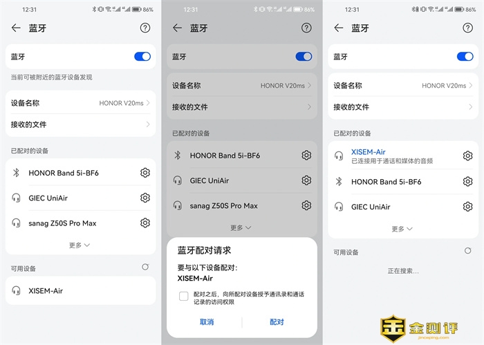 蓝牙连接方式?统一的蓝牙连接方式,打开手机蓝牙,搜索耳机(耳机一定要从充电舱内取出来,否则是关机状态找不到耳机的),点击耳机请求配对,配对成功下次就可以直接使用无需重复连接蓝牙啦。有一说一,充电舱打开耳机开机,耳机放入充电舱充电舱关闭之后耳机是默认关机的,挺方便。当然了,如果耳机佩戴在耳朵上但是离手机很远并且时间很长,耳机也是会自动关机的,长按就可以再次开机啦。