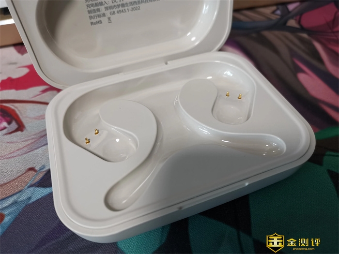 取出耳机之后的充电舱,耳机放置槽看着倒是挺可爱的。值得注意的地方在4个金属小点,这是耳机充电的地方,我个人一个习惯是,耳机事件使用的较多的情况下,这个金属点也需要适当的擦拭一下,以防耳机无法充电的情况发生。