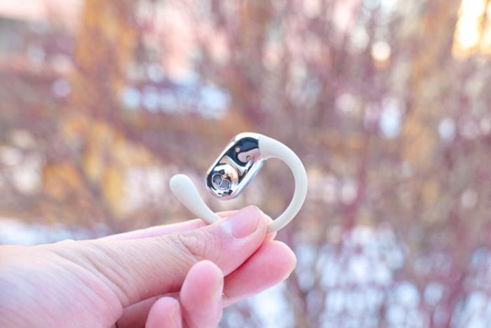 西圣Air是悬浮式挂耳佩戴,3点受力形成了稳固支撑,耳机的前后重量比优化为1:1,剧烈运动时也会保持重心平稳。并且耳机十分轻盈,时间长了几乎会忽略掉它的存在,真正做到了无感佩戴。