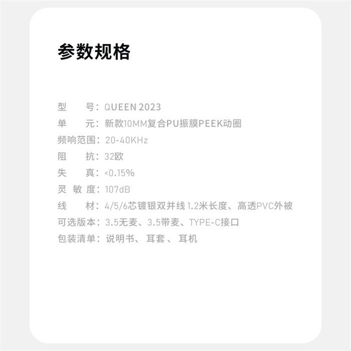 锦瑟香也TFZSUPERTFZ QUEEN 2023高清有线HIFI监听耳机怎么样呢?一起来看看实际的使用体验:【金测评】简约奢华,音质出众,不足百元的HIFI耳机!【金测评】杀疯了!入门烧友推荐,79元HiFi耳机有多卷?【金测评】锦瑟香也QUEEN 2023:百元内HIFI耳机,音质超预期!【金测评】极致性价比:TFZ(锦瑟香也)QUEEN2023 HIFI耳机体验!【金测评】锦瑟香也QUEEN 2023,更具性价比的有线耳机,音质新体验
