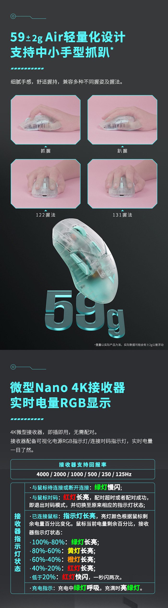 雷柏VT9Air双高速双模无线游戏鼠标怎么样呢?一起来看看实际的使用体验:【金测评】8K回报率的轻量级游戏鼠标,设计超有科技感,雷柏VT9Air上手【金测评】双模双高速,雷柏VT9Air带你上8K高速【金测评】透明科技感,雷柏VT9Air双高速双模无线游戏鼠标【金测评】雷柏VT9 Air游戏鼠标体验:科技感拉满、8K双模双高速【金测评】8K疾速加长续航,还得看“两双”鼠标雷柏VT9Air【金测评】雷柏VT9 Air鼠标评测:OTA无线+有线双8K回报率,主打快稳准!【金测评】雷柏VT9 Air游戏鼠标:有颜值有实力,电竞鼠标新宠儿!【金测评】手感轻盈性能强悍,雷柏VT9Air无线游戏鼠标体验!【金测评】透明、多彩、轻量化,专为中小手用户打造的游戏鼠标它来了【金测评】它来了它来了,它带着4K Nano接收器走来了——雷柏VT9 Air轻量化鼠标测评