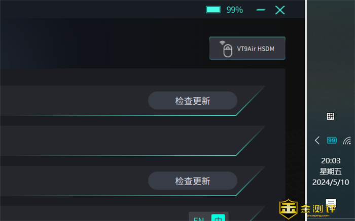 这里还有一个小细节,当鼠标通过4K nano无线接收器连接时,不仅可以通过接收器上的灯光颜色判断鼠标电量,还可以在电脑的状态栏以及驱动程序截面看到鼠标当前剩余电量,让你随时掌握鼠标电量情况。
