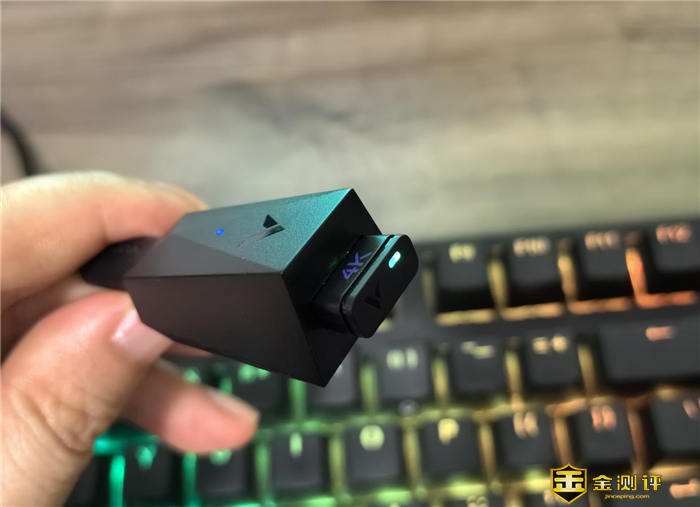 无线连接上,用标配的4K nano无线接收器。接收器的体积和普通的接收器大小无异。搭配数据线和附赠的USB转接器,实现接口的延伸,从而获得更好的无线游戏体验。