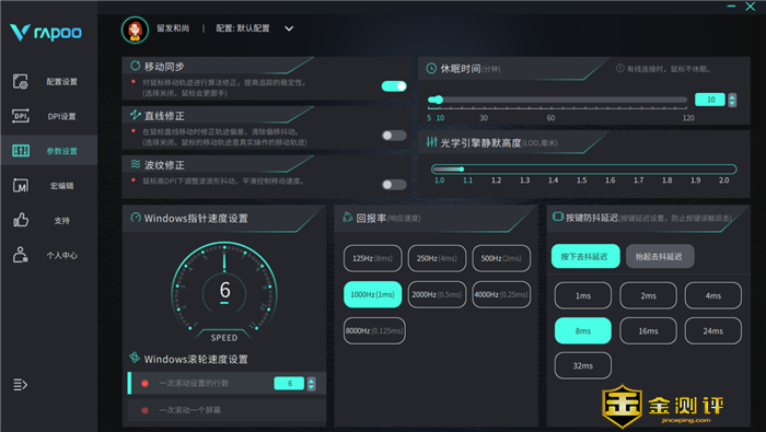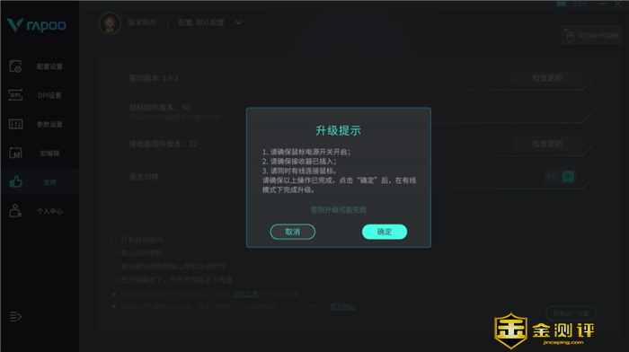 前文介绍按键时,提到雷柏VT9 Air的按键可以自定义。通过Rapoo驱动程序,可以对鼠标按键功能、 DPI档位、数值以及回报率等进行配置。还可以将设置同步到云端或从云端下载已有的设置。