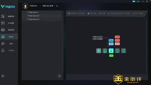 宏编辑界面可以看到鼠标支持常见的游戏宏辅助操作,其中USB报告率在有线状态能支持到8000Hz,2.4G无线状态下最高到4000Hz。鼠标的编程按键功能对游戏中快速释放技能非常方便。可编程的自定义按键多达10个,VT9 Air提供了云同步和多组板载存储功能。可以在本地保存好多组配置文件,非常适合游戏玩家使用,现在经过OTA升级之后鼠标版本固件110,无线也能通过开启使用OTA型支持8K回报率了,使用速度也是大幅提升。