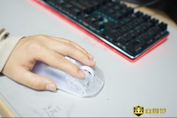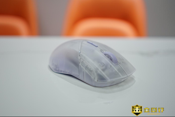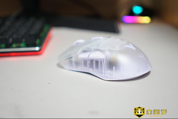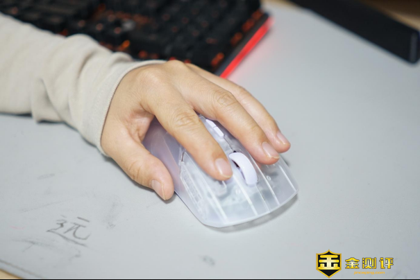 鼠标采用了半透明磨砂ABS材质的外壳,可以透出内部的灯光效果和电池主板等元器件,手托部位使用弧线造型符合人体工程学设计,长时间游戏也不会太过劳累。