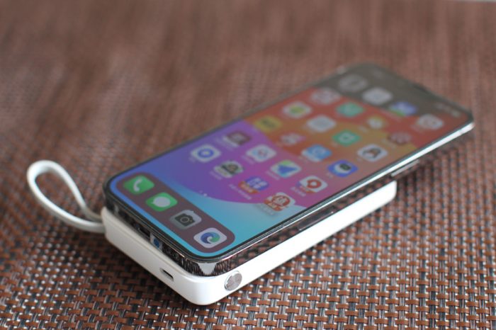 既然是磁吸式移动电源,那么它的吸附能力就是一项重要的考证项目。可以看到,在实际使用中,它可以牢牢的吸附在手机背面,晃动也不会导致手机摔落。不过如果iPhine使用的保护壳不能支持磁吸充电,那么在使用中,移动电源的吸附能力就要大打折扣了。