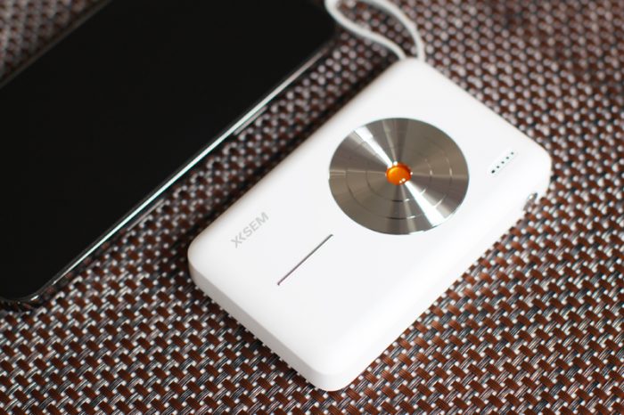 这款西圣移动电源主体为塑料材质,表面进行了防滑处理,握感舒适,不易脱落,背面的圆圈标识我们已经不陌生了,而其小巧轻便的体积和重量,使得它非常便于携带,无论是放在包里还是握在手中,都不会给使用者带来负担。