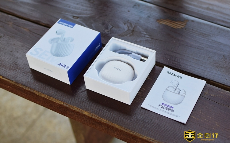 包装方面,西圣XISEM AVA2设计的非常小巧,里面是一只塑型盒,一份说明书。耳机和充电仓以及充电线分置于内。感谢金测评。