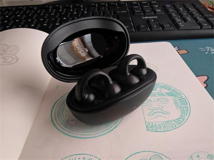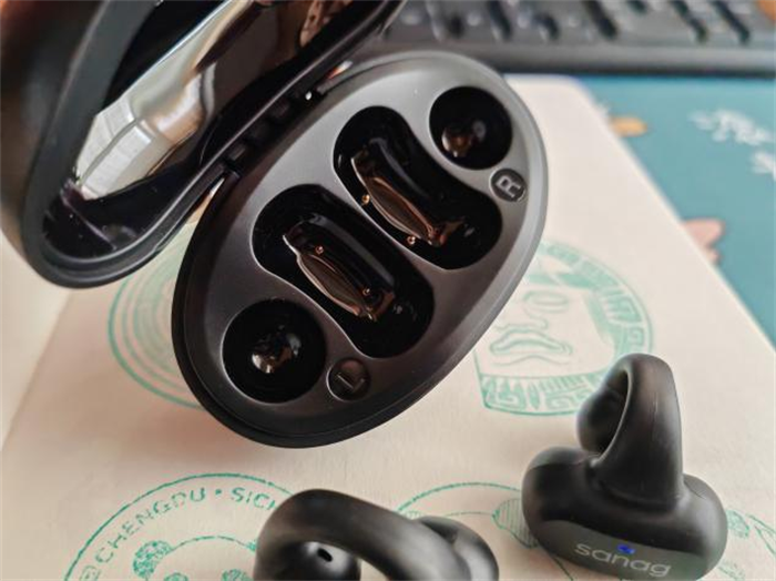 打开充电舱就可以看到塞那z50s AI MAX耳机式耳机放在了对应的耳机槽里。就这样看过去,觉得塞那耳机挺像一个小哑铃的,外观设计感觉还是挺有意思的。
