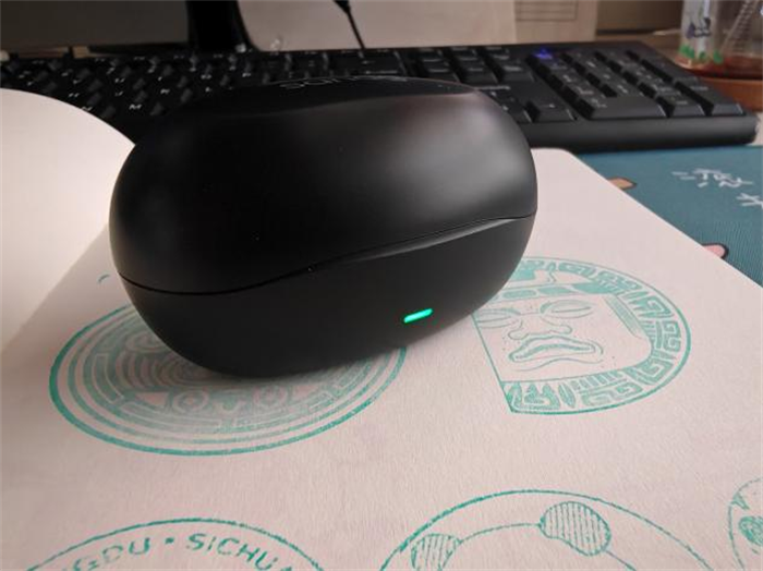 塞那的耳机充电舱感觉都是差不多的设计,可能因为我使用的基本也都是Z5系列的原因,椭圆形的黑色蛋壳模样,握在手里会觉得特别的光滑,开口处下方有LED灯设计,方便查看充电时候是否有充进去。