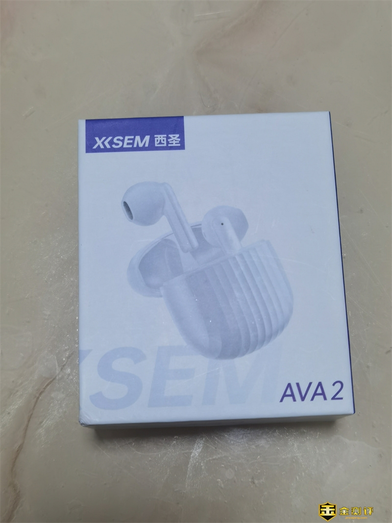 这款西圣AVA2真无线蓝牙耳机延续西圣一贯的简约包装风格,采用惯用的白色背景,中间是产品渲染图,左上角是品牌名称,右下角是耳机型号,盒背面是耳机的相关参数等。