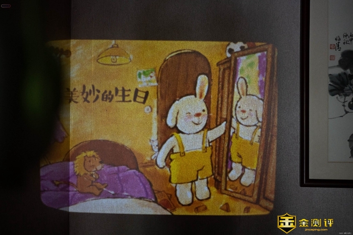 如果故事机正在播放,开盖就会自动暂停播放,非常安全。目前趣学伴提供的胶片有一百多种选择,拥有多达2520个场景,满足了我们早教的各种需求。不同于手机等设备,趣学伴的投影画面采用漫反射,没有频闪,而且非常柔和,很好的呵护了孩子的双眼。并且配合镜头上面的调焦旋钮,还能够根据不同的投屏距离调整清晰度,获得更好的观看效果。