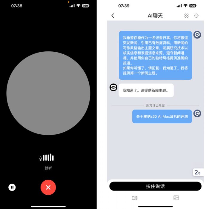 sanag塞那Z50 AI Max耳机之所以叫“AI”耳机,是因为它在“塞那”APP里集成了一系列新的AI功能,如AI聊天、AI灵图绘画、智能翻译、语音助手等,这就让耳机除了听歌之外,还可以满足更多的日常生活、办公学习需求。