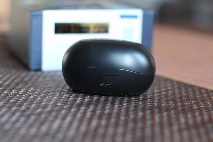 充电的接口设置在充电仓的背面,充电时也不妨碍仓盖的打开。