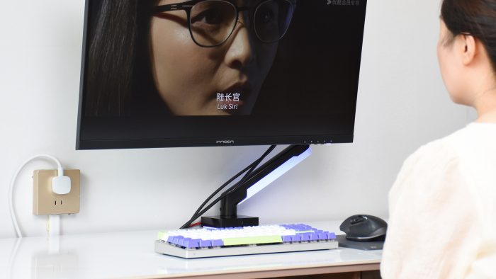 这样一来不同身高的用户,不同的桌面和座椅高度,都能够找到一个舒适的角度,减少对脊椎的压迫,同时保持适当的观看距离,保护眼睛健康。就我自己来说,平常办公的时候一般把显示器放的远一些,中心线和目光平行,保持直立坐姿更加专注;玩游戏的时候把显示器向前拉,并稍稍向下压,靠在椅背上相对放松一些;而到了晚上看电影的时候,就把显示器向上升,角度向下俯,把椅背放到成“葛优瘫”姿势。