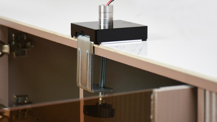 组装好以后,可以通过底部的大三角螺栓调节,既方便又省力。连接组件能够兼容10-65毫米的桌面厚度,一般的桌面厚度都在这个范围。