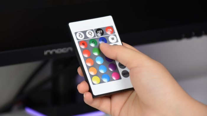 通过底座正面的触摸按键可以调节不同的RGB灯效,另外还搭配有遥控器,可以调节灯光开关和亮度等等。