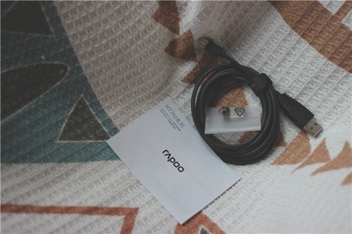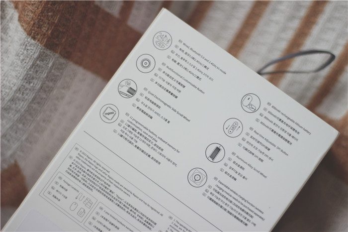 雷柏MT760系列的包装简洁而富有设计感,正面通过线条画与实物图相互映衬,直观展示了鼠标的外观轮廓和主要特点。