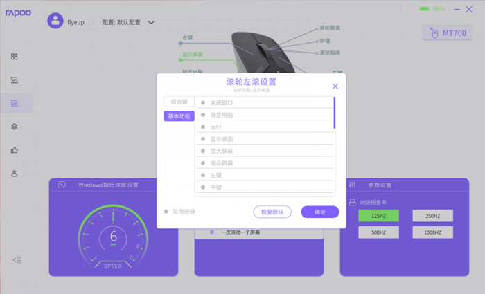 需要说明一下,我们可以通过软件来设置包括:DPI、实体按键功能自定义、滚轮速度设置、USB报告率以及指针速度,这里我简单的设置按键自定义,大大的提高了我的摸鱼效率。嘿嘿!