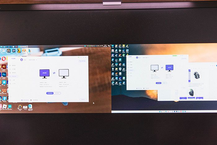 MT760&MT760 Mini另有一个非常重要的功能就是,无线跨屏设备移动传输了,对于多设备使用用户,可能要常备2个鼠标,例如我,台式机和笔记本电脑同时使用时,两个鼠标摆在桌面上,经常忘了换鼠标,看着笔记本电脑的屏幕,晃动半天台式机的鼠标,然后才反应过来用错鼠标了。MT760&MT760 Mini的跨屏互联功能可以让一个鼠标控制两台电脑,只需要将鼠标移动到当前屏幕的边缘后,继续移动光标将鼠标切换到另一台设备,可谓是相当方便,再也不用两个鼠标来回切换了。