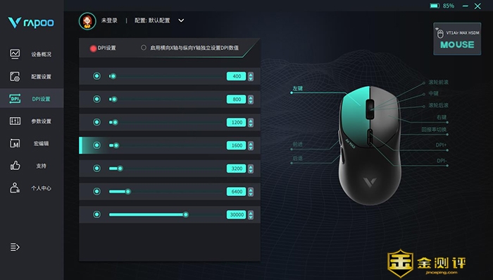 雷柏VT1 Air MAX电竞鼠标的驱动软件支持复杂的宏键设置,极大地方便了用户深度自定义按键功能。对于那些不常使用的按键,我们能够进行个性化配置,例如可以将其设定为控制音量、一键显示桌面或是快速锁定屏幕等功能。此外,该驱动还包括了游戏爱好者所热衷的功能——X轴与Y轴DPI的独立调节,这无疑使得玩家在游戏中的操作更加精确和高效。