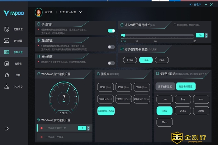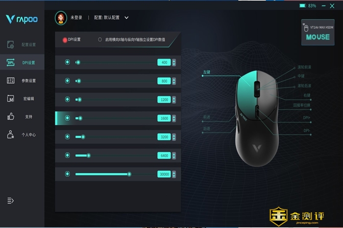 VT1 Air MAX搭载了原相3950传感器,支持50-30000DPI的调节范围,750IPS追踪速度和50G加速度,确保了游戏中的稳定表现。这些具体参数都可以在雷柏的驱动软件中进行设置,操作非常简单,在驱动软件中,包括DPI设置、参数设置、宏编程等都可以随时自定义,支持板载存储和云端同步,方便根据不同的游戏和使用环境进行替换,非常方便。