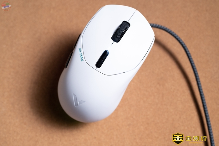 在这款鼠标的主按键上,可以看到在左键后方的有鼠标的型号,辨识度很高,同时有一定装饰性,显得更加高端。VT1 Air MAX用的是欧姆龙橙点微动,点击寿命高达6000万次,同时雷柏C+Click分离式按键预压调教技术的应用,实现了更加出色的手感。鼠标的滚轮采用了凯华GE 2.0编码器,灵敏度很好,DPI调节按键在使用了凯华绿点,反馈表现不逊于主键。
