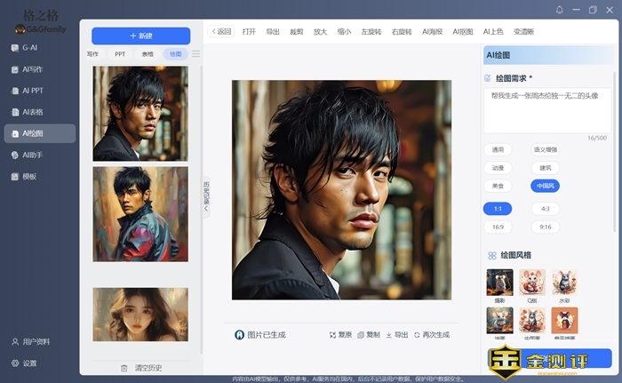 我们平时使用的大模型工具,绘图一般都是一项必收费的功能。格之格GS80 AI Pro不仅集成了几大主流大模型还把这些功能全部免费地开放出来,这点很值得点赞。生成独一无二的图像,生成自己的创意图片等都变得轻松又简单。不仅可以AI绘图,还提供了海量的各类高清创意大图供大家参考和使用。不仅如此GS80还支持AI抠图、上色、图片放大、制作海报等诸多功能点。实际测试无论是生成速度和准确度都表现得可圈可点。