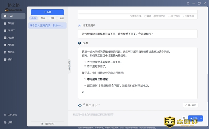 格之格GS80 AI Pro在AI大模型方面整合了文心一言4.0+讯飞星火4.0+通义千问+Kimi四种大模型,多模型的整合推理能力和效率方面很让人惊喜。我们日常的工作很生活有很多的场景会用到AI问答,实际体验下来格之格的AI表现确实很不错,小编也尝试了一些很容易骗过大模型的急转弯类问题格之格AI都回答得很不错。