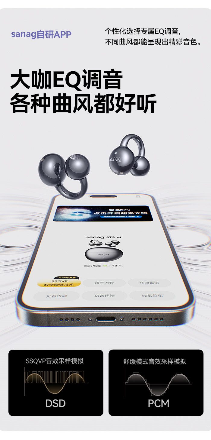 SANAG塞那S7S骨传导蓝牙耳机林允明星同款怎么样?一起来看看实际的使用体验:【金测评】Sanag S7S耳夹式耳机评测:高颜值与卓越性能并存【金测评】拥有林允明星同款耳机的快乐,塞那卵石AI耳机让我收获定制乐趣【金测评】佩戴更舒服的AI耳机,耳夹佩戴的时尚耳饰,塞那S7S 耳夹式耳机体验【金测评】AI时代,你的专属耳机!Sanag塞那S7S耳夹式蓝牙耳机,音质绝佳降噪强【金测评】塞那S7S耳夹式耳机:林允推荐!这款宝藏耳夹耳机值得拥有!【金测评】气传导耳机?原来是明星同款塞那s7s【金测评】灵动轻盈,超震撼音质体验——塞那S7S耳夹式耳机【金测评】塞那S7S耳夹式蓝牙耳机:无线自由,音质卓越【金测评】林允同款,时尚百搭!Sanag塞那S7S 耳夹式蓝牙耳机体验【金测评】时尚舒适,音质出众,AI加持,续航持久——塞那S7S气传导蓝牙耳机