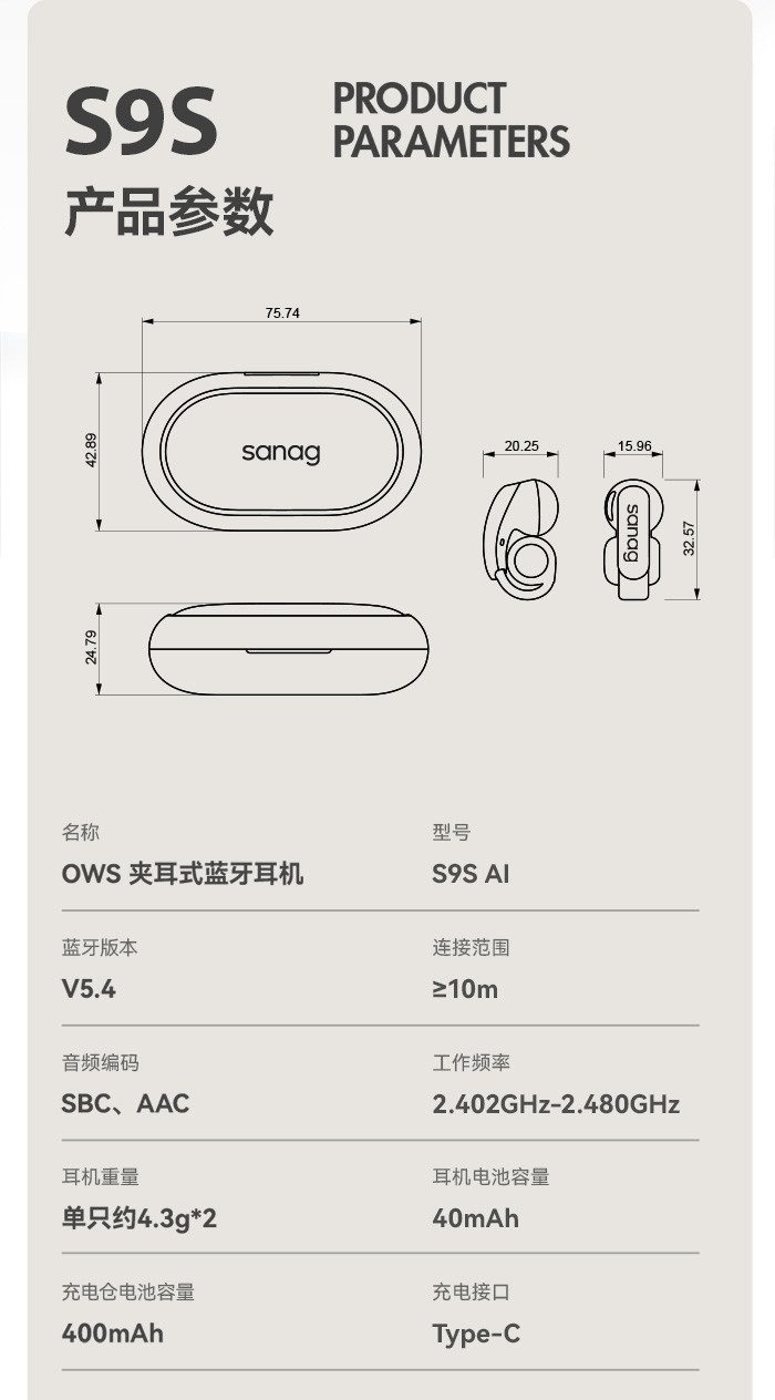 SANAG塞那S9SAI骨传导蓝牙耳机余文乐同款 10台
