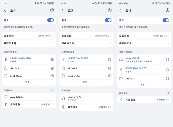 蓝牙耳机的连接方式,基本都是统一的:首先打开手机的蓝牙功能,然后从充电舱内取出耳机,在蓝牙页面可用设备里找到对应的蓝牙耳机,点击连接,连接完成就OK了。当然了,还有个复杂点的连接方式,通过塞那APP找到对应的耳机连接,还是手机自带的蓝牙连接方式简单方便啊。