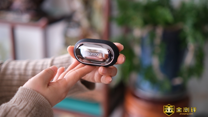 在电镀舱面中间,sanag的品牌Logo若隐若现,拿在手中,宛若一铜镜,将周围景物映射其中,似乎宣告着无限的包容于其中。