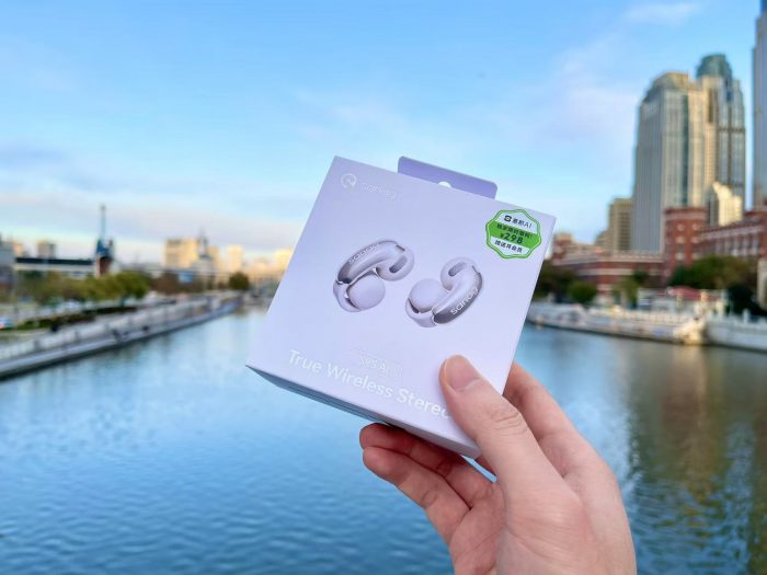 ▲ 这款塞那S9S耳夹式耳机,采用硬质的白色纸盒包装,外观设计简约低调,尺寸上也非常适合装进包里携带!