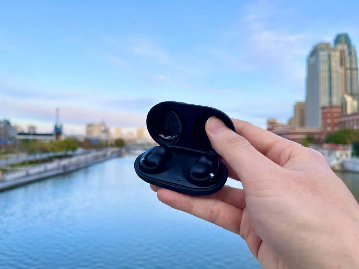 ▲ 耳机整体尺寸和大拇指指甲盖差不多,圆润的造型,摸起来手感非常舒适!
