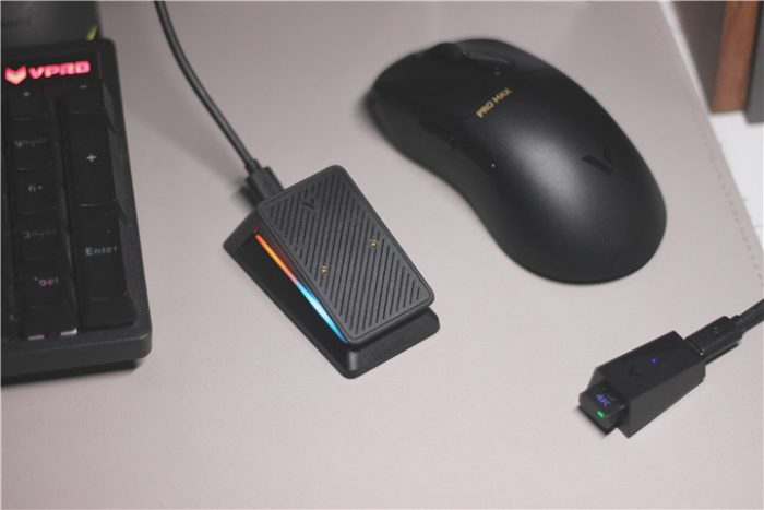 上面说过了这款雷柏(Rapoo)VT3PRO MAX支持无线有线双模,自带微型Nano 4K接收器,而且这款接收器集成了实时电量RGB指示灯,后期通过OTA即可实现8K回报率,最高可以达到0.125ms响应速度。