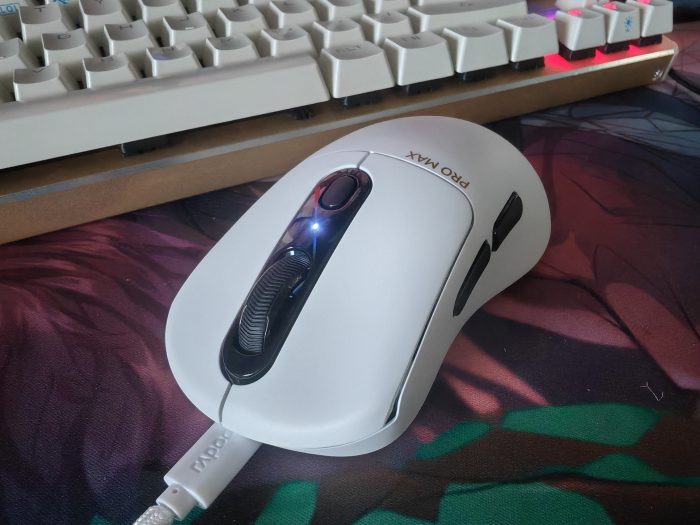 如果VT3PRO MAX没电了,连接充电线即可,充电线连接之后,LED灯白色灯常亮。不想用无线的时候,其实连接着充电线当有线鼠标使用也是一种选择,使用的同时还能保持鼠标电量,挺好的啊!在这里不得不说一下,雷柏VT3PRO MAX选择的是800mAh的锂电池,1KHz回报率续航时长为200小时。满打满算天天打游戏,也可以使用至少8天的时间,所以按照我不用鼠标就关机的时间来看续航时长,大概一个月充一次电都是有可能的!
