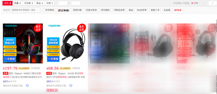说到头戴式游戏耳机性价比的天花板,那一定离不开雷柏的VH系列,从入门的VH160到最近才推出的VH850都深受玩家喜爱,尤其是学生党,很多男生宿舍可以说是人手一台这个系列的耳机。在某东上搜索“头戴式游戏耳机”,综合排名最高的就是雷柏VH系列的这两款。笔者也趁着年前各大购物平台打折,入手了这款雷柏VH850,不到200元的价位,就买到了这个系列的顶配,经过一周左右的体验,今天就来跟大家分享一下这款产品的使用感受。