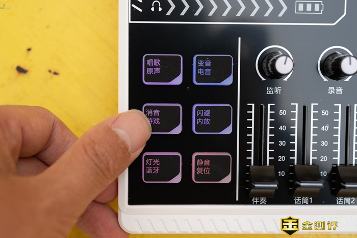 此外它附带的功能功能键还可以一键关闭麦克风输入的消音,带有男生、女生、娃娃音和魔音的四种变音,可以关闭设备蓝牙伴奏等功能,在直播或者是录音过程中可以大大提升工作效率。