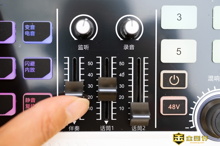 具体来说,在它特色的功能上,当仁不让的就是三种经过调校的音色预设,分别是突出高频的美声,风格偏中性的演唱,以及低频更加突出,搭配扎实短混响的说唱,这三种音色可以一键切换,方便播主在唱不同风格内容的时候丝滑切换,时刻保持完美音调。此外它的消音功能也很使用,可以消除音乐中的人声部分成为伴奏,同时让监听耳机中播放的是原唱。