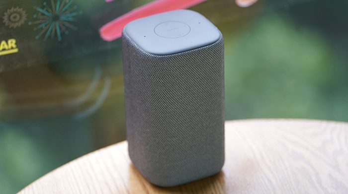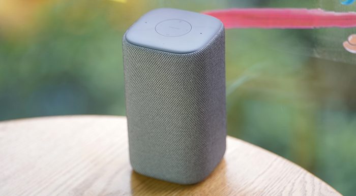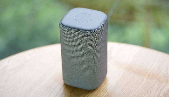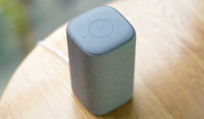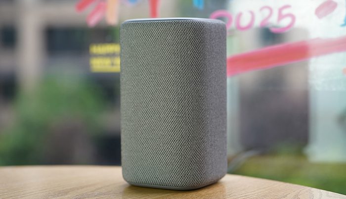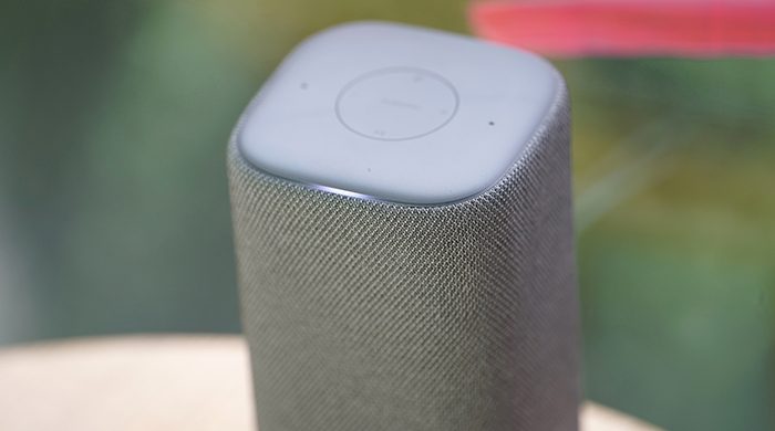 最大的设计亮点当属新一代小米智能音箱的材质,机身四周包裹的是灰色编织网布,让它的触感更加细腻,这种设计也更加容易融入居家环境当中,据说这个材质还支持湿巾擦拭,哪怕是容易积灰的环境也可以方便清理。