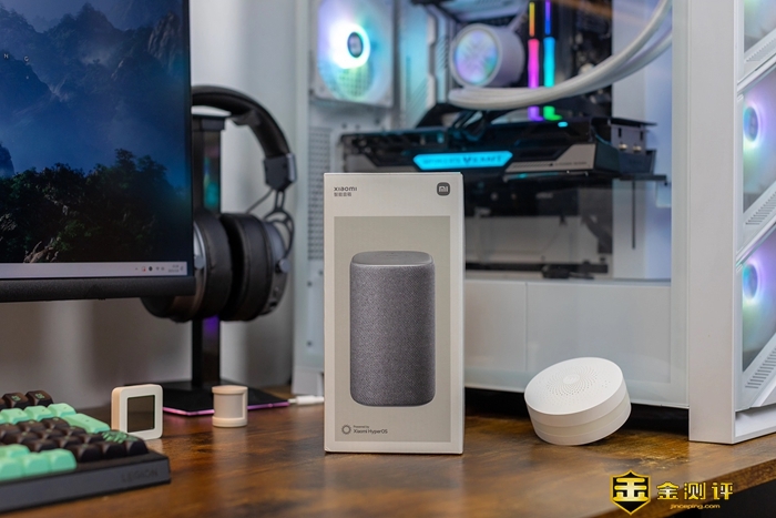 小米智能音箱的包装比较简约,正面是产品的外形图,背面是音箱的特色功能和产品相关信息等参数。这里可以看到,小米智能音箱采用了全网布包覆机身,不仅拥有AI大模型问答、灵动炫彩灯效、智能生活管家和蓝牙Mesh网关功能外,大师级的匠心调音,也是让我非常期待的。此时,急不可待的打开包装,内部除了小米智能音箱外,还有电源适配器和使用说明书。